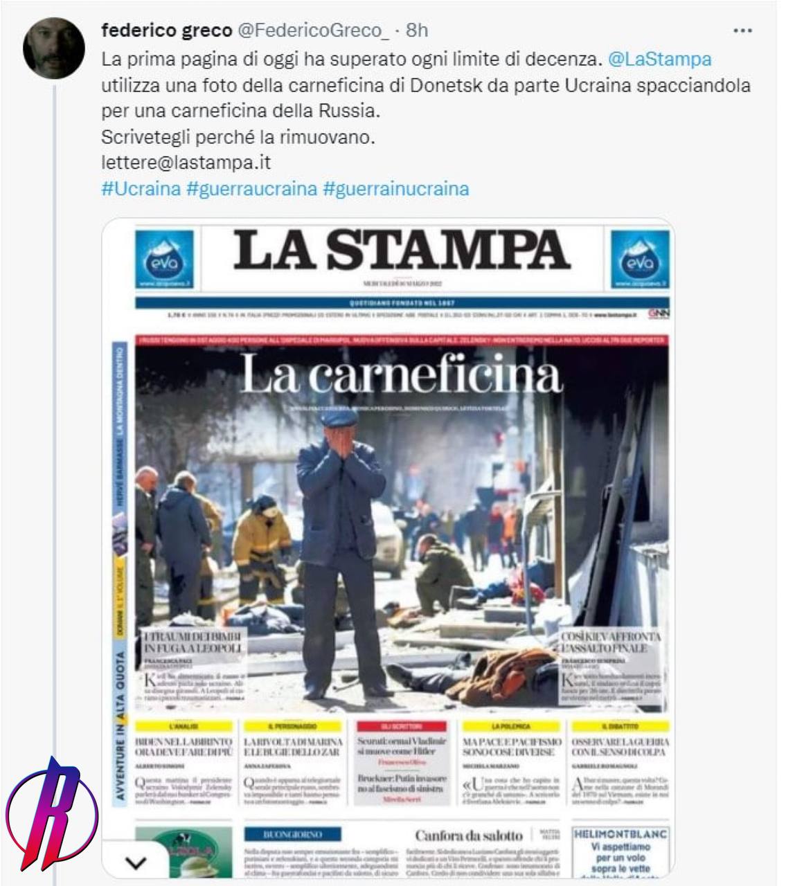 Также в иностранных СМИ остался практически незамеченным удар Украины по Донецку ракетой «Точка – У» 14 марта. В результате трагедии в Донецке погиб 21 человек, еще десятки получили ранения. Зато фото из Донецка итальянская газета преподнесла как обстрел Киева российской армией.