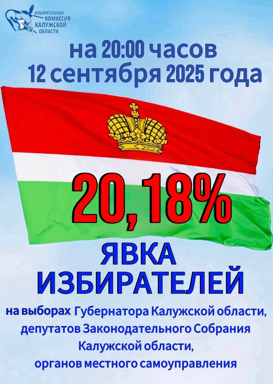 На восемь часов вечера 12 сентября, явка избирателей в Калужской области составила 20,18%.