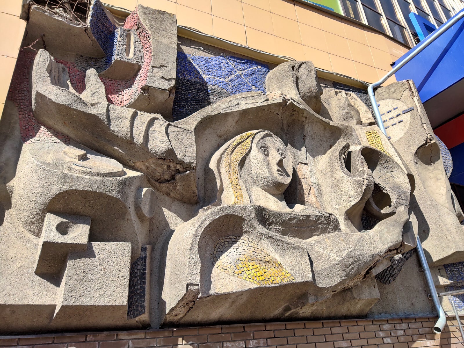 Восстановительные работы начнутся с мозаичного барельефа «Космос». Сначала очистят бетон и мозаику, чтобы выявить все дефекты и дефекты поверхности, после чего будет выполнен монтаж утраченной смальты и латание трещин в бетоне. На заключительном этапе поверхность покроют силикатным лаком на водной основе с включением светлого пигмента для создания единого тона.