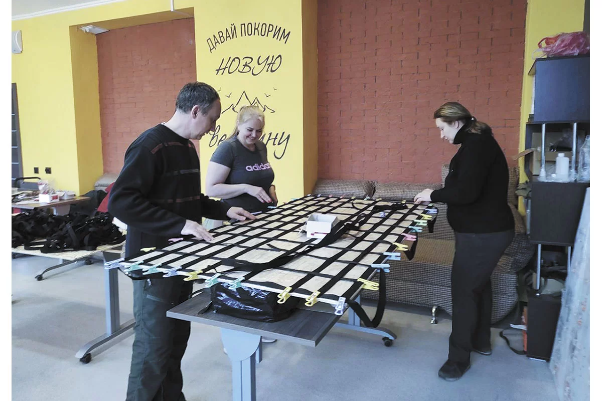Но раз вызвались помочь, надо действовать. Ирина с помощниками поехали по магазинам искать подходящую ткань, дело это оказалось непростое. Но специальная ткань под иностранным названием «Оксфорд 600» была найдена, и швейная команда приступила к выкройкам.