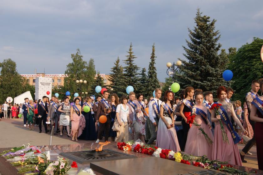 На площади каждая из школ возложила цветы к могиле Неизвестного солдата, а затем выпускники отправились на Старый торг, где их ожидала концертная программа. Во время шествия ребята поздравляли друг друга с праздником, кричали и подсвистывали на радость их родителей, друзей и просто горожан, которые выстроились по обе стороны улицы вдоль всего маршрута.