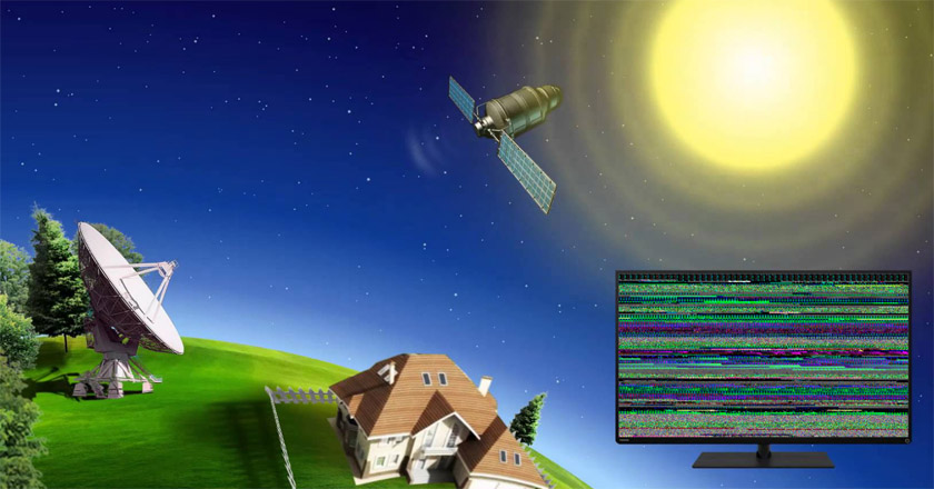 Это сезонное явление, когда Солнце, спутник связи и приемная антенна на телебашне выстраиваются в одну линию. Солнце — мощный источник радиосигнала. Оказавшись с ним на одной линии, наземный ретранслятор принимает вместе с сигналом со спутника связи и солнечный сигнал и передает их дальше — на антенны телезрителей.