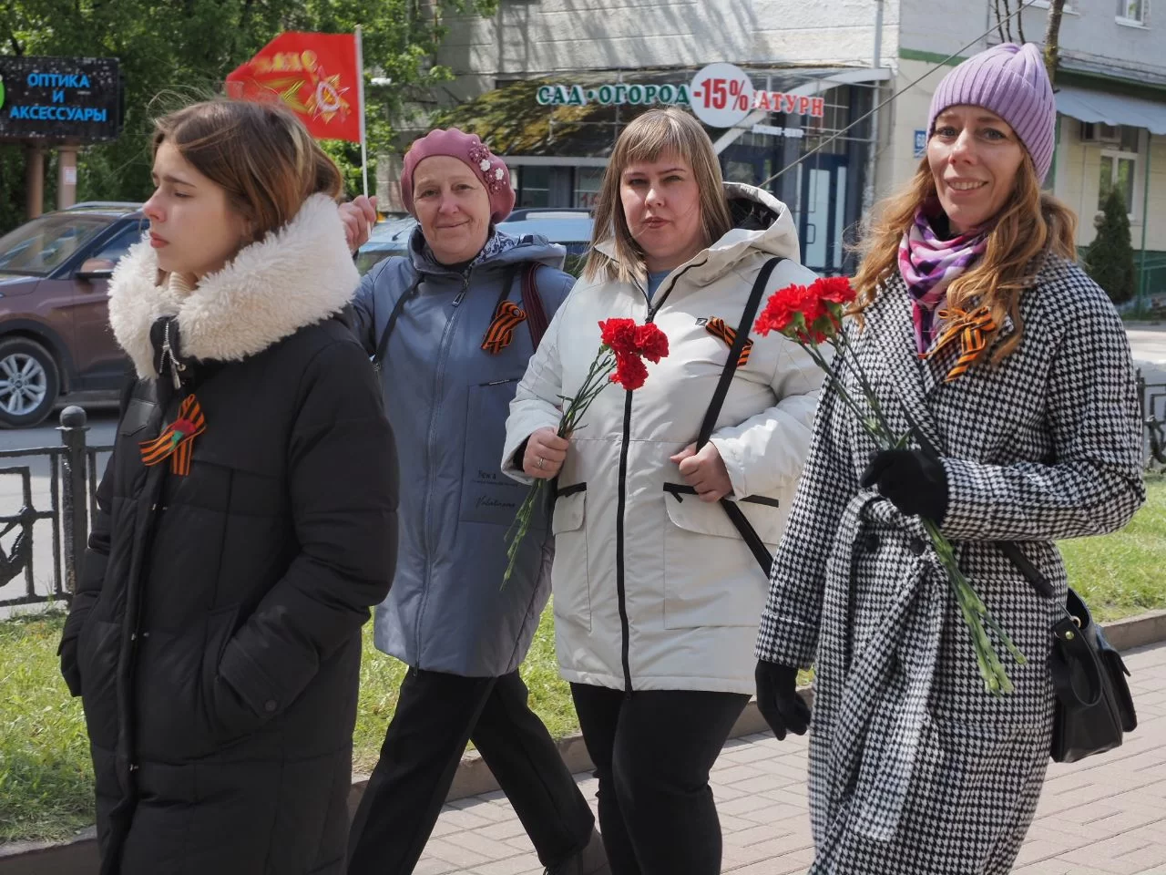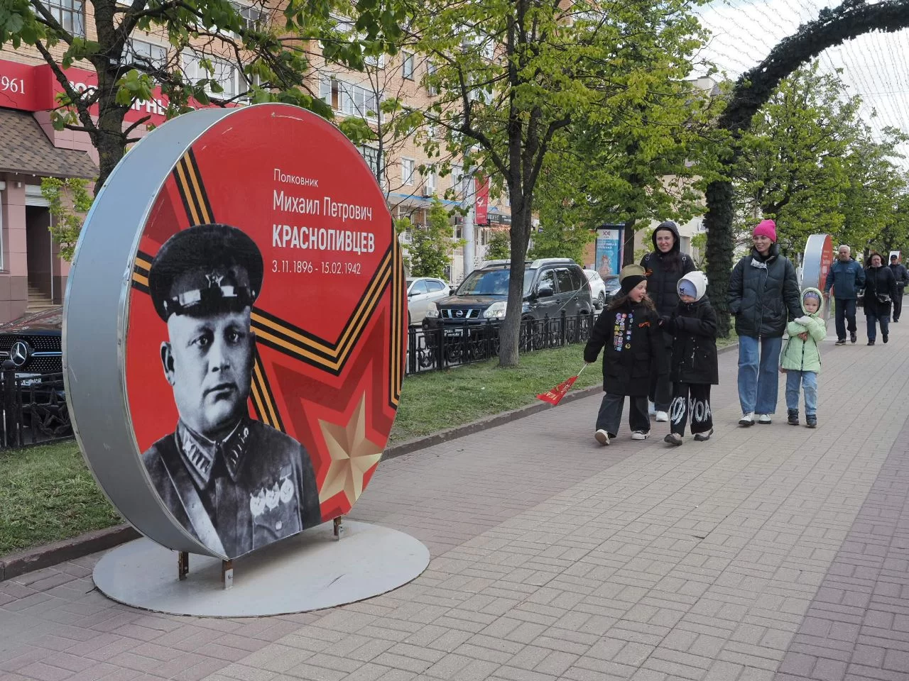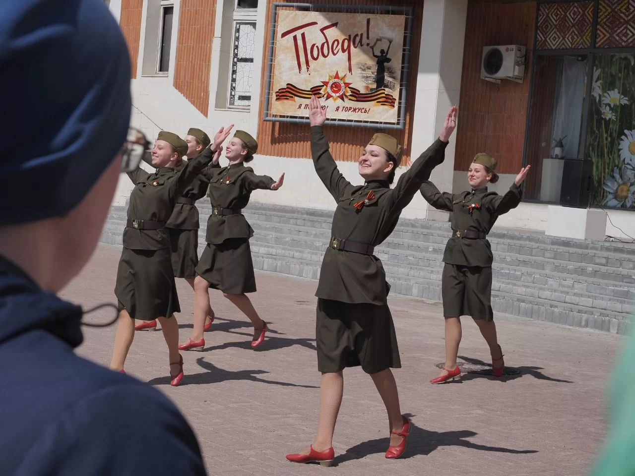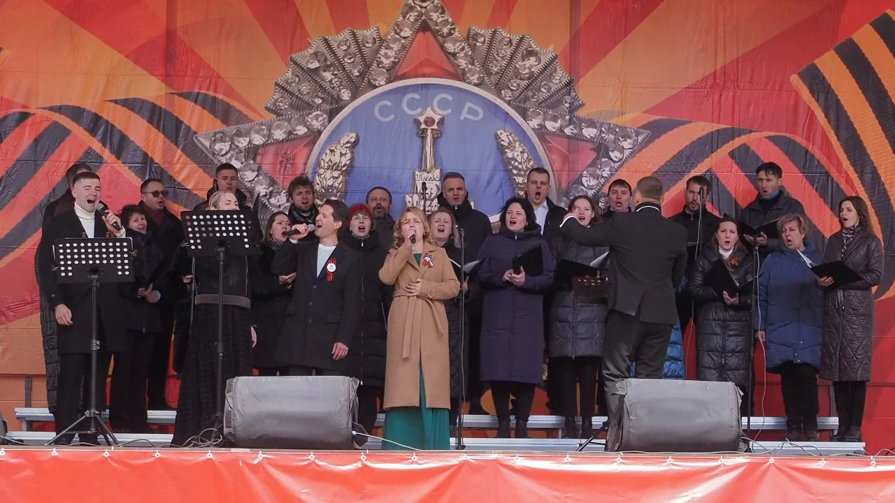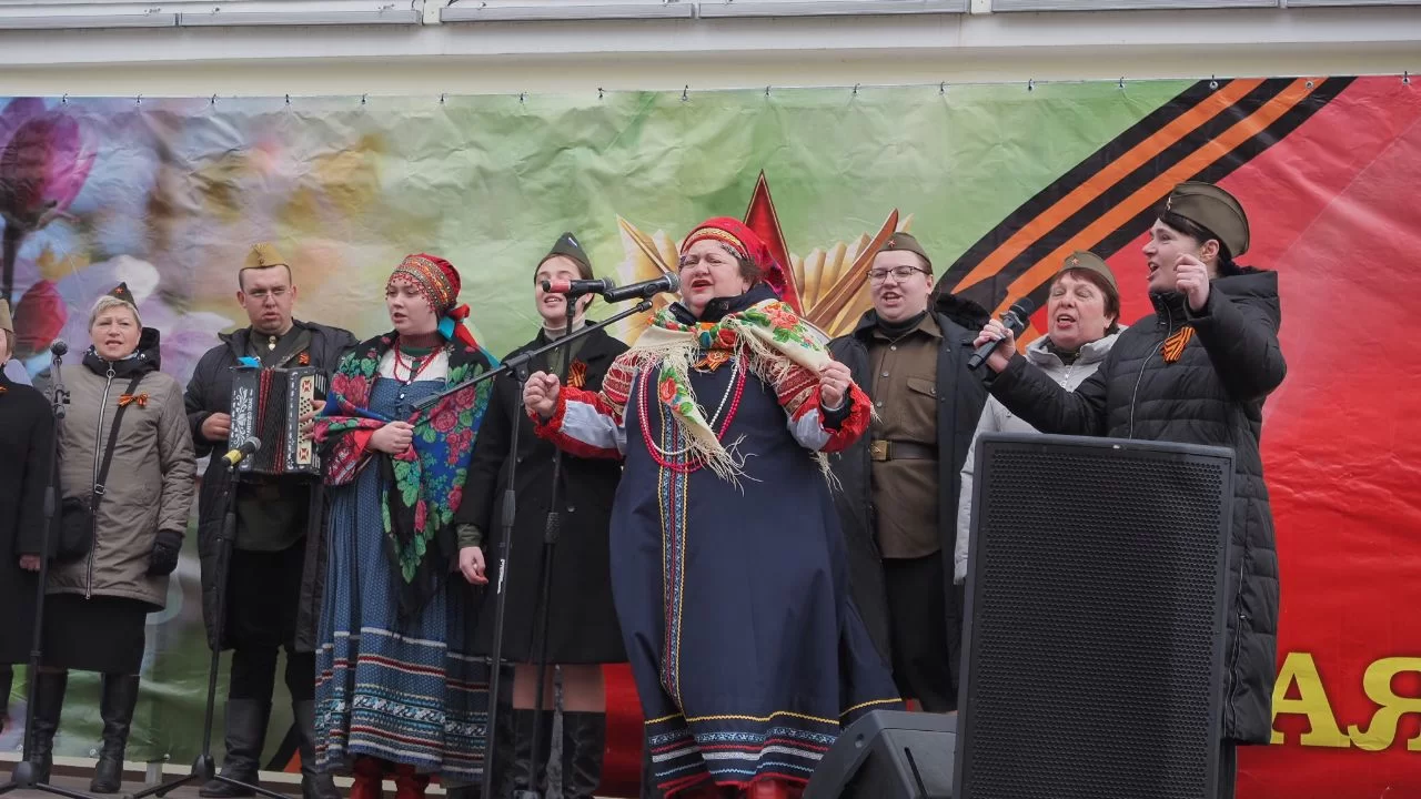 На второй сцене рядом с театром кукол народные песни о войне исполнил коллектив «Калужская тальянка». На пешеходной части улицы Театральной работают тематические фотозоны.