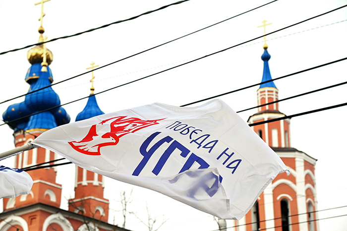 В этот день весь центр Калуги украсился флагами с символикой праздника. Они появились на улице Кирова и Ленина, на административных зданиях. Сотни флагов создают праздничную атмосферу у калужан.
