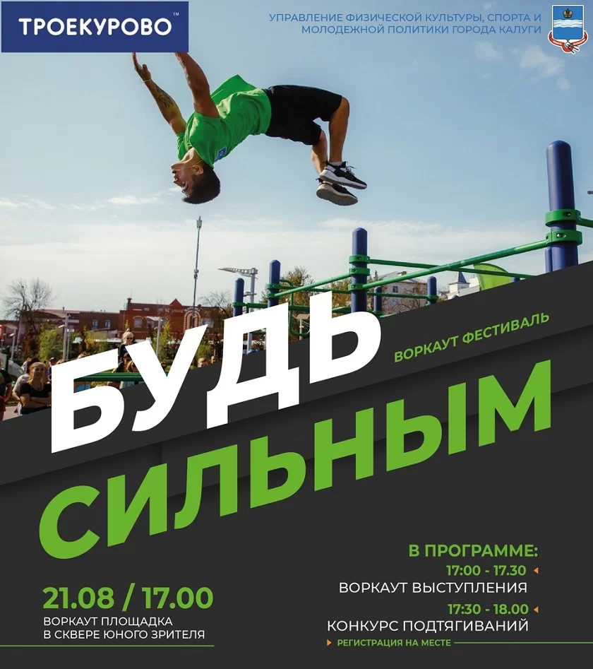 С 17:00 до 17:30 на воркаут площадке начнутся свободные выступления, где любой желающий может показать своё мастерство в течение одной минуты. Позже калужане посоревнуются в подтягиваниях на перекладине. Победителя наградят призом.