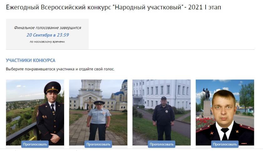 Конкурс проводится ежегодно, в нем соревнуются участковые из всех городов и районов нашей области. На первом этапе, который продлится до 20 сентября, калужане могут поддержать полицейского, который, по их мнению, достоин высокого звания «народный». На сайте областной полиции представлены персональные страницы участковых с подробной информацией о вверенном им участке и достижениях. Победитель регионального этапа поборется за звание «народного» на Всероссийском этапе.