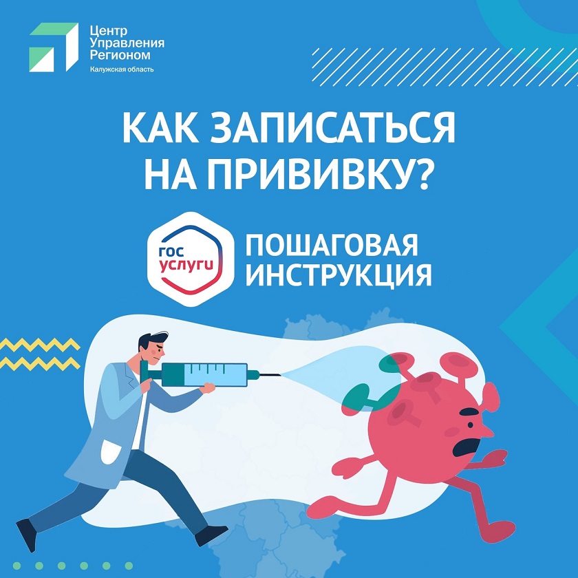 Жителям области Калужский ЦУР предоставил пошаговую инструкцию, как зарегистрироваться на прививку от коронавирусной инфекции на сервисе Госуслуги.