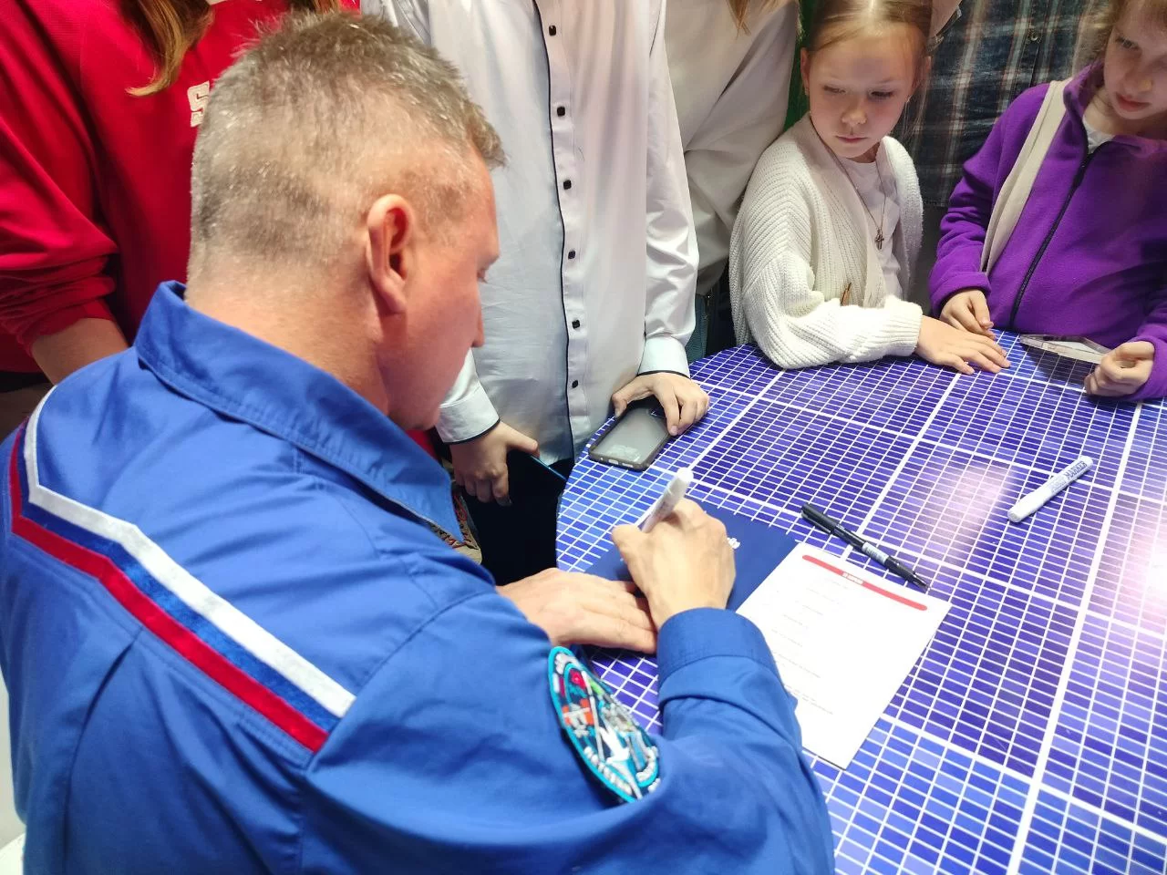 Завершением встречи стала автограф-сессия. К космонавту выстроилась целая очередь желающих всех возрастов сфотографироваться с ним и получить автограф на книге и фотографиях, сделанных Сергеем Прокопьевым в космосе.
