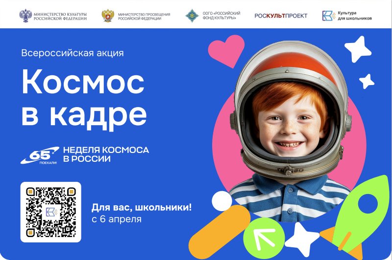 6 апреля 2026 года стартует Всероссийская творческая акция для школьников «Космос в кадре», организованная в рамках проекта «Культура для школьников».
