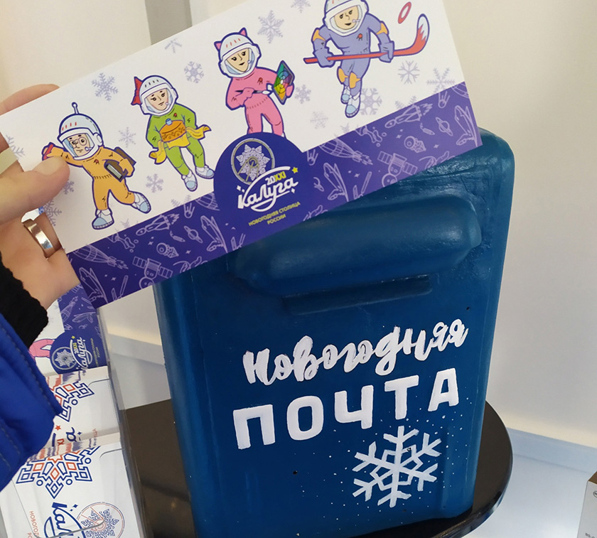 На все письма, отправленные из этого отделения, наносится оттиск специального художественного штемпеля «Калуга – новогодняя столица России». На оттески можно увидеть главный символ Калуги этого года – космическую снежинку.