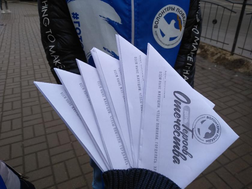 Активисты регионального отделения Всероссийского общественного движения «Волонтеры Победы» провели в областном центре две акции, приуроченные ко Дню Героев Отечества.