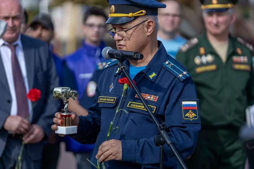 18 сентября на площади Победы жители областного центра встретили участников благотворительного автопробега, организованного ДОСААФ России совместно с министерством просвещения РФ.