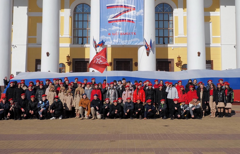 Около трех сотен человек выстроились в форме буквы «Z» в Калуге на Театральной площади. Среди них юнармейцы, представители патриотических объединений и клубов, кадеты, волонтеры Победы, студенты, школьники, неравнодушные горожане.