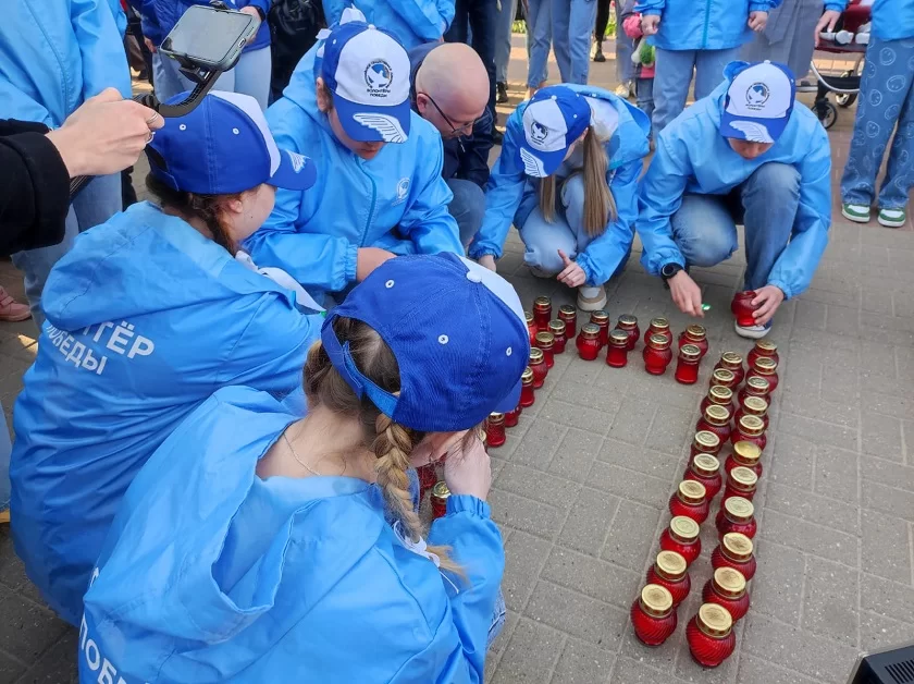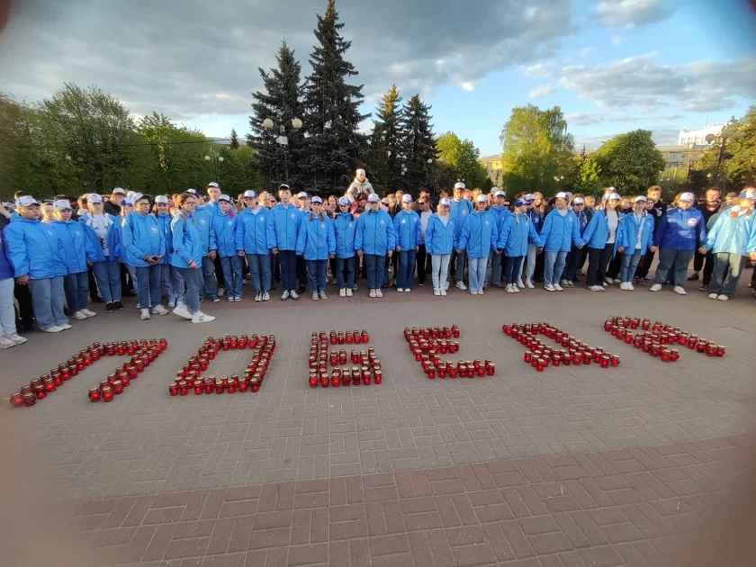 По окончании акции из свечей было выложено слово «Победа». Все желающие смогли также зажечь свои огоньки и поставить их рядом с получившимся словом.
