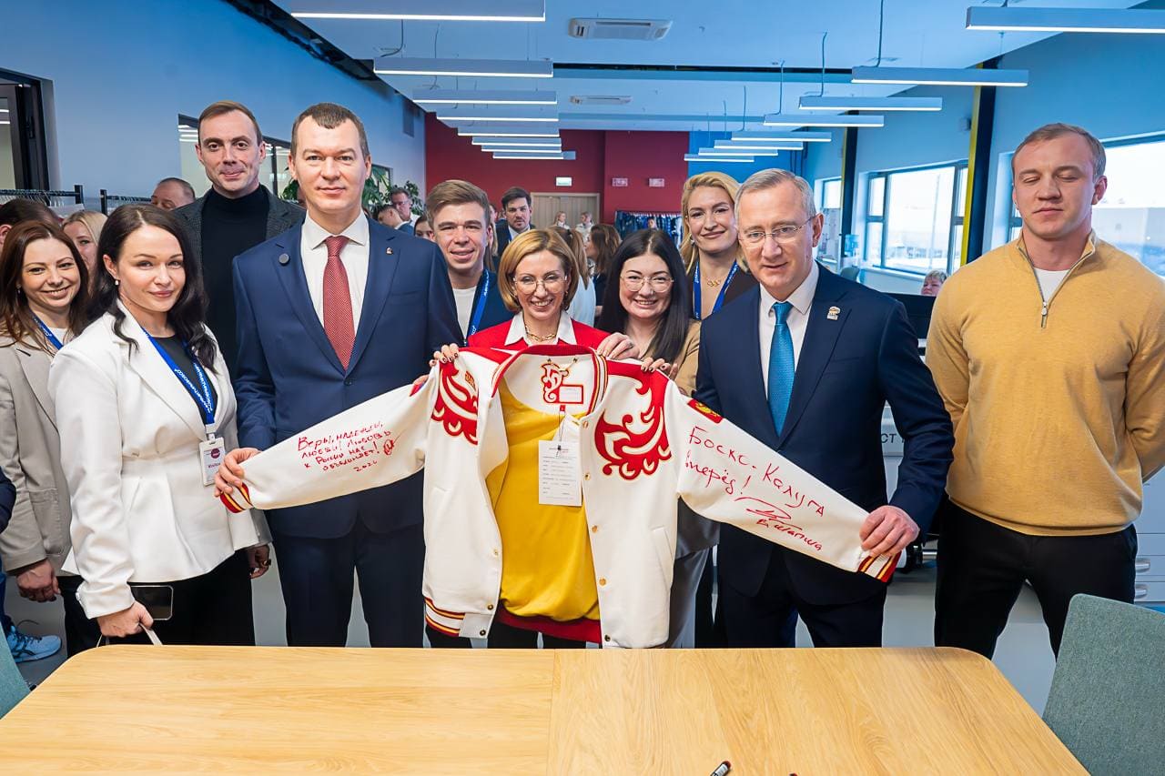 В рамках визита на предприятии побывали министр спорта РФ, председатель Олимпийского комитета России Михаил Дегтярёв и губернатор. Главе Минспорта председатель координационного совета группы компаний «Боско» Михаил Куснирович показал производство, где уже полным ходом идёт выпуск новой коллекции.