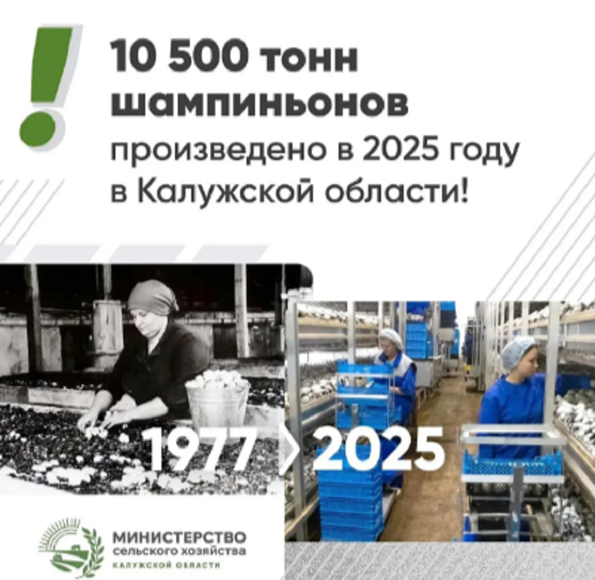 Ведомство отметило, что такой результат стал возможен благодаря современным технологиям. Сегодня комплекс по выращиванию шампиньонов представляет собой полностью автоматизированное производство с климатическими камерами, системами полива и вентиляции, холодильниками для шоковой заморозки, лабораториями контроля качества и инженерными системами, поддерживающими идеальный микроклимат круглый год.
