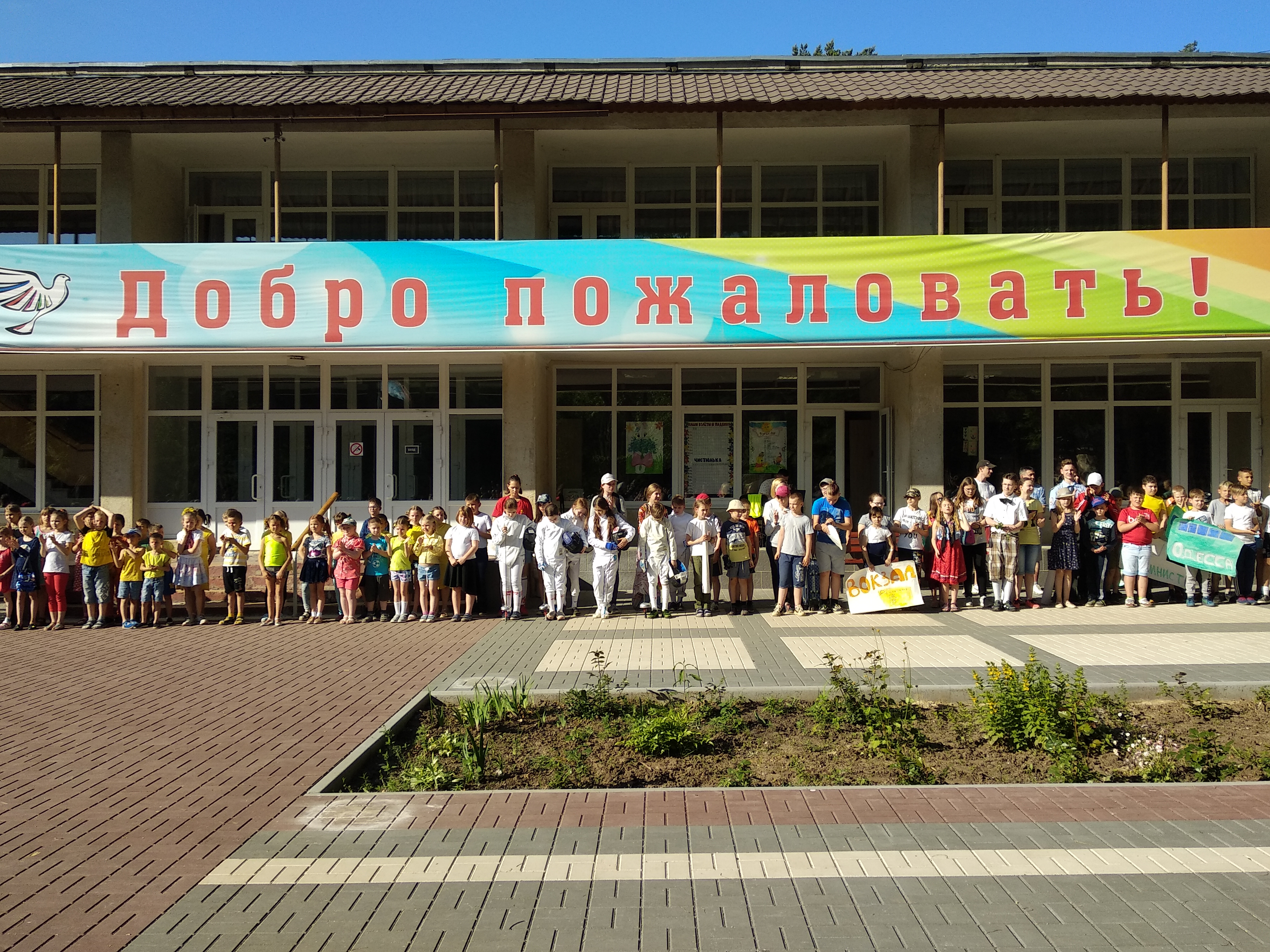 В честь открытия смены вожатые лагеря подняли российский флаг и флаг лагеря.