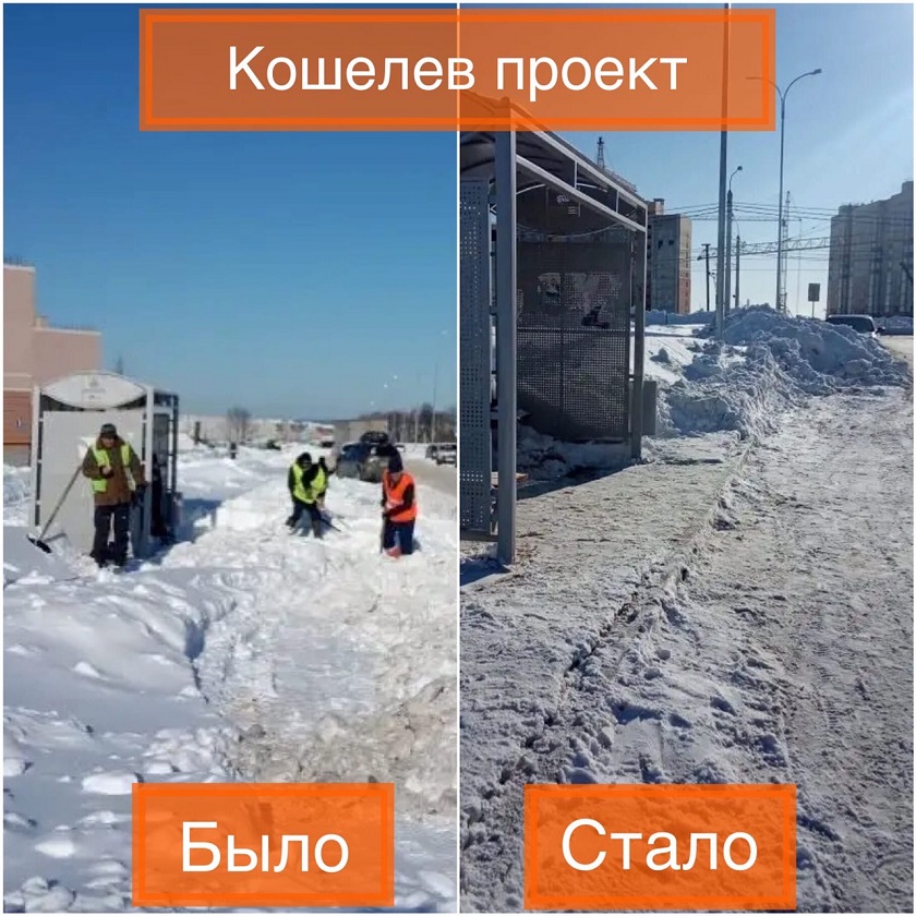 На фотографиях показано, как изменились улицы города после уборки. Можно увидеть, что до проведенных работ, на дорогах и тротуарах были горы снега. А сейчас улицы очищены и по ним можно беспрепятственно передвигаться.
