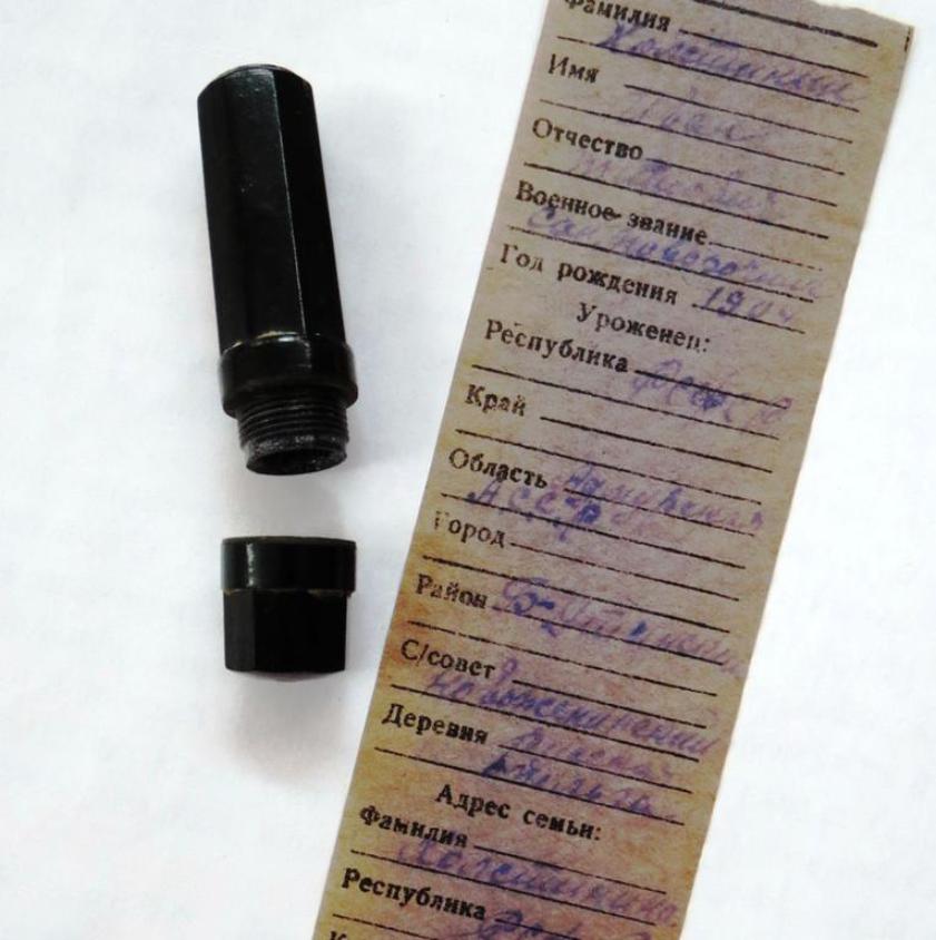 Криминалисты, используя современные методы и технологии, провели техническое исследование и установили первоначальное содержание вкладышей смертных солдатских медальонов. Один из них принадлежал санитару 1903 года рождения, уроженцу города Новоузенска Саратовской области. Второй его земляку из деревни Ермоловка — мужчине 1904 года рождения, служившему также санитаром. Оба солдата погибли в одном бою.