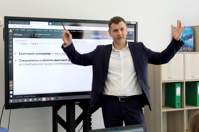 7 апреля в Калуге заместитель губернатора Дмитрий Разумовский провёл для учащихся 10-го класса ИТ-лицея открытый «Урок цифры». В этот раз тема занятия была посвящена квантовым технологиям.