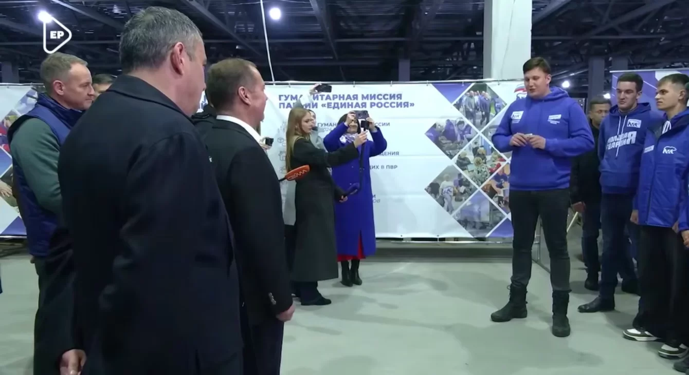 Руководитель гуманитарной миссии «Молодой Гвардии» Александр Сидоренков, также представляющий Калужскую область, лично вручил памятный шеврон Дмитрию Медведеву и рассказал о работе активистов в приграничье, включая участие в эвакуации жителей Суджи во время операции «Поток». Медведев назвал подвигом работу добровольцев, подчеркнув, что они демонстрируют себя настоящими гражданами России.