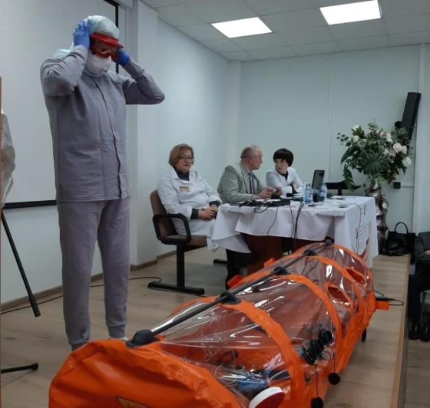 Медики на практике отработали приемы по по защите персонала при подозрении на коронавирусную инфекцию, алгоритм применения современного защитного противоэпидемического костюма.