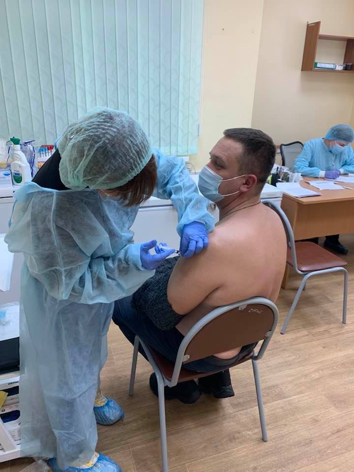 На симке, опубликованном на ее странице в фейсбуке, главный врач «Сосновки» Максим Алексеевич Холопов проходит вакцинацию от COVID-19.