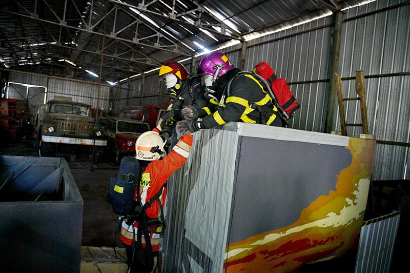 Под стоны и крики о помощи, треск ломающихся конструкций представители СМИ попытались пройти «шкуродеры», прогары, завалы в новом тренировочном комплексе в пожарной части № 2 в Калуге.