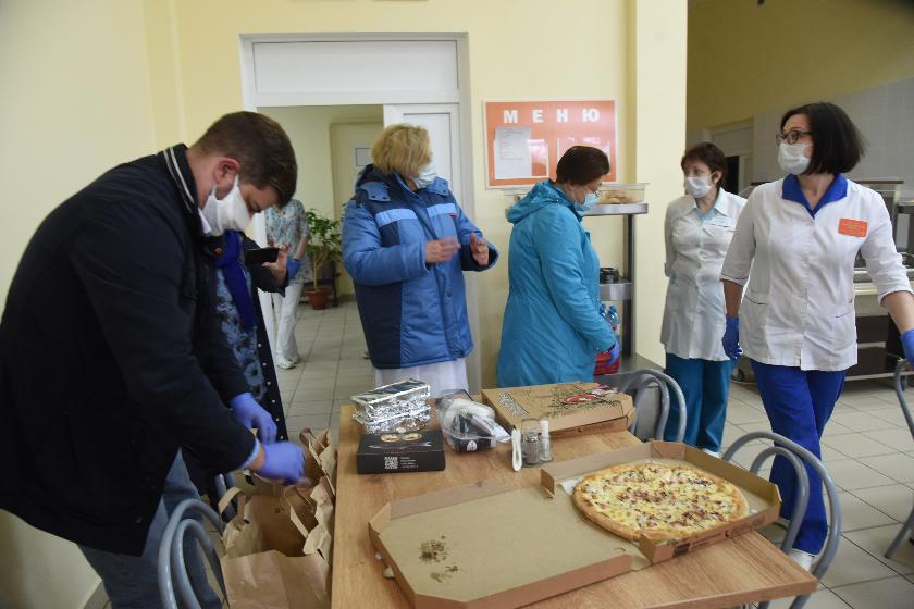 — Данная акция действует с апреля 2020 года, по распоряжению руководителя нашей компании Александра Эдисоновича Окунева. Мы понимаем насколько важный и тяжёлый труд у врачей, особенно в этот период, какая огромная ответственность лежит на их плечах, и мы рады поднимать им настроение угощая нашей вкусной пиццей, — рассказывает волонтер Алексей Зорин, помогающий доставлять продукты в инфекционное отделение.