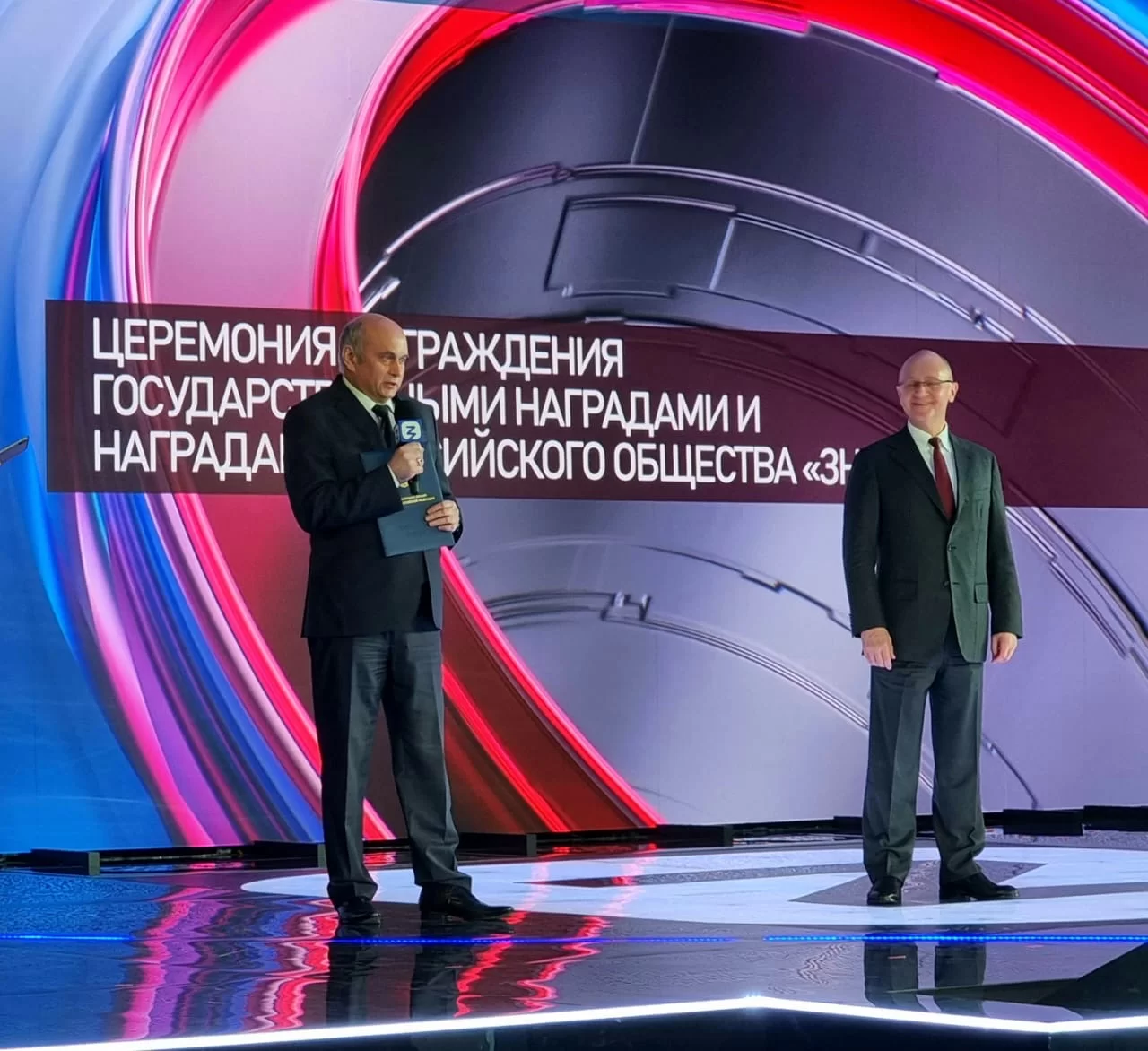 Он удостоен нагрудного знака Общества «Знание», которую ему вручил генеральный директор Российского общества «Знание» Максим Древаль, и благодарственного письма Президента России. Эту награду ему вручил первый заместитель Руководителя Администрации президента Российской Федерации Сергей Кириенко.