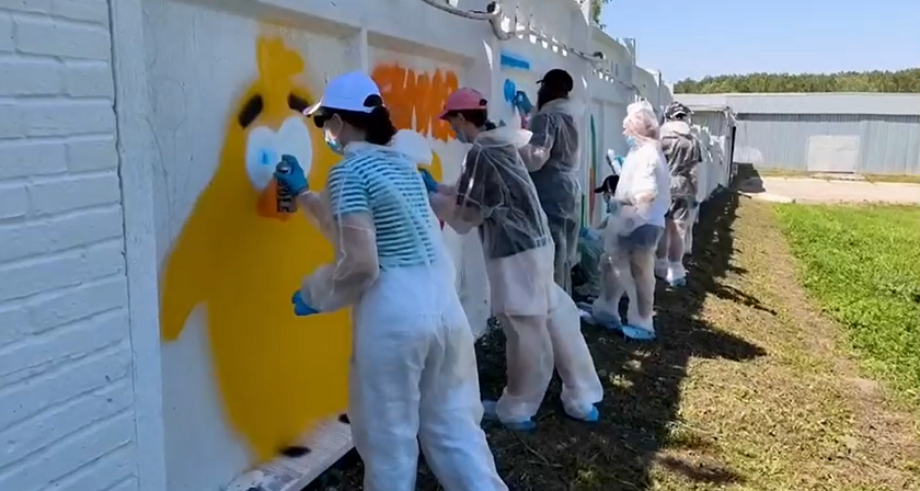 На территории «ПРОДО Птицефабрика Калужская» забор украсили различными рисунками.
