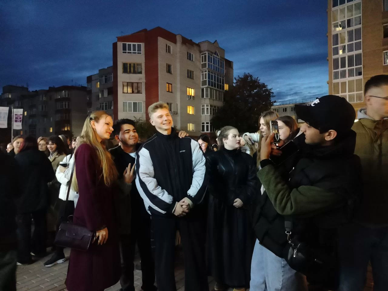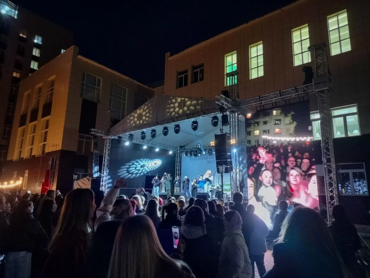 Несмотря на холодную погоду, во внутреннем дворике КГУ царила тёплая и душевная атмосфера, согревающая и заполняющая собой всё вокруг. Праздник начинался в 18:30, однако ещё в шесть вечера территория вуза была полностью заполнена студентами и преподавателями. Все они общались, танцевали и просто веселились.