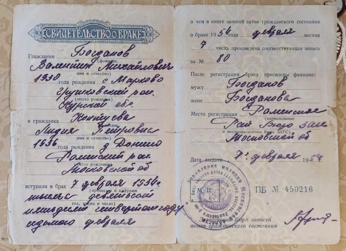 Это случилось в августе 1953-го на железнодорожной станции Раменское в Московской области. Переведенный туда по службе молодой лейтенант Валентин Богданов собрался по делам в Москву и в ожидании поезда увидел у билетных касс совсем юную Лиду Контуеву.