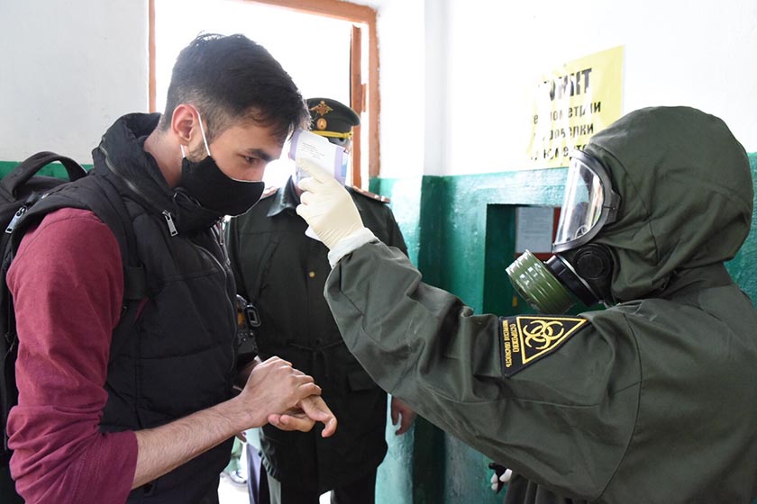 На сборном пункте новобранцам выдадут не только обмундирование, но и маски, дезинфицирующие средства, необходимый гигиенический набор.