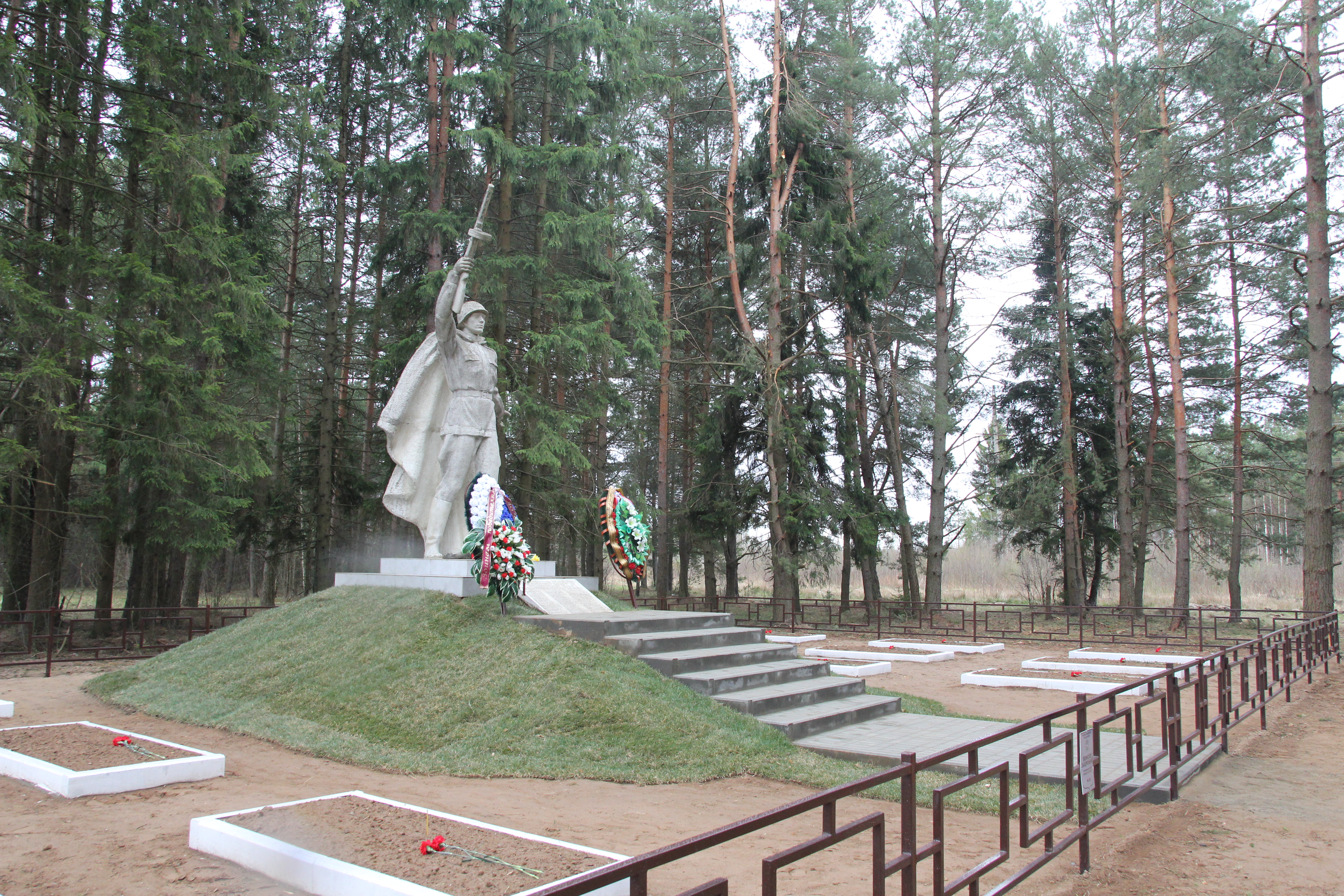 В 50-е годы прошло первое благоустройство захоронения: территорию обнесли деревянным штакетником, на крупнейшей братской могиле насыпали курган и установили невысокую каменную стелу. В семидесятых годах стелу заменили гипсовой скульптурой скорбящей женщины с цветочной гирляндой в руках. На кургане у подножия постамента – мемориальная плита. На ней перечислены имена захороненных бойцов. Известных – всего 30. Имена ещё 47 пока установить не удалось.