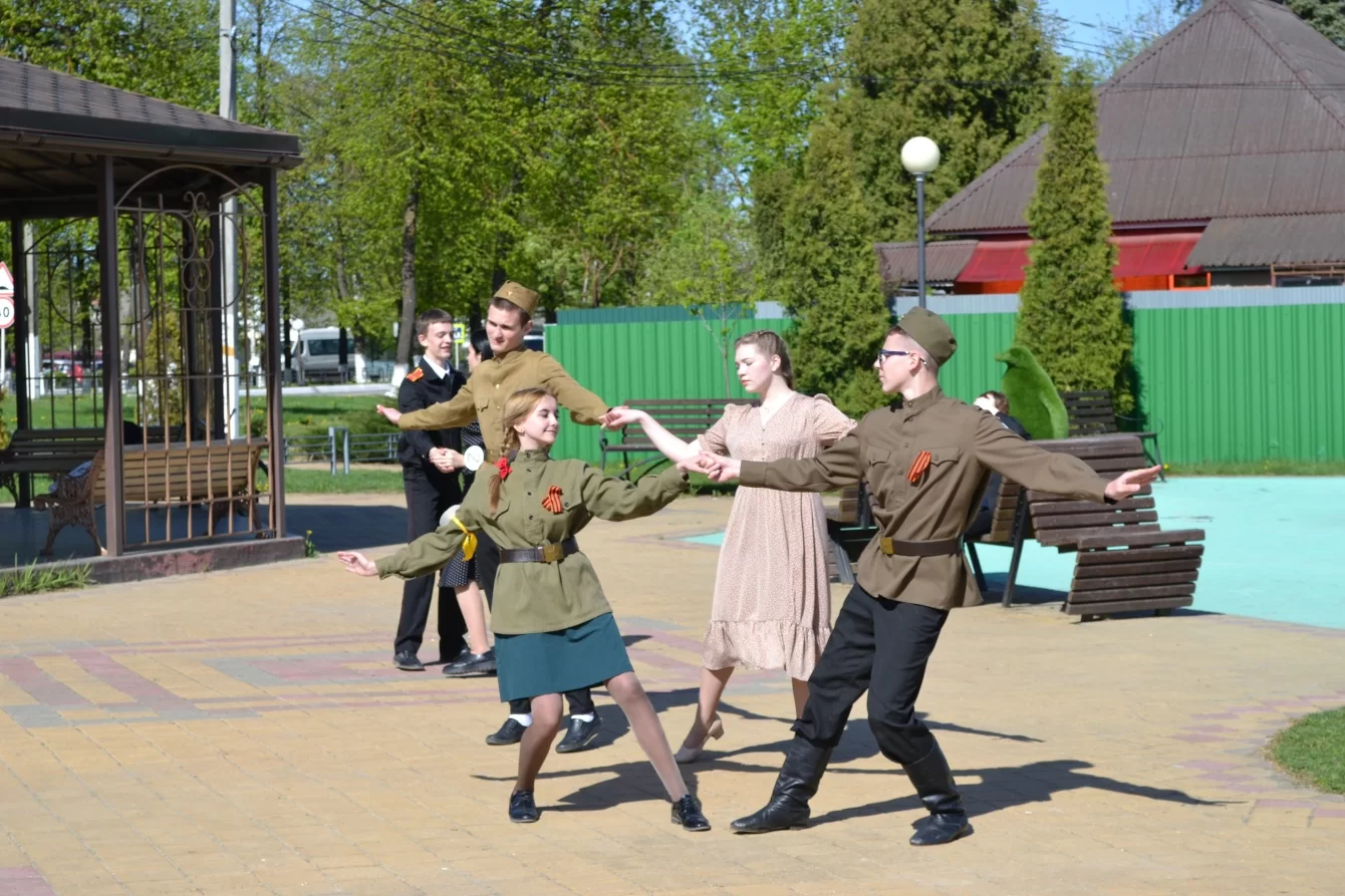 Патриотическая Международная акция «Вальс Победы» была организована Домом детского творчества в детском сквере им. М.Б Чистякова. Ее участниками стали десять ребят из нескольких школ города.