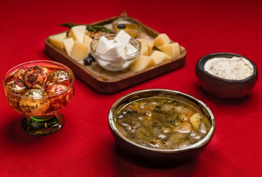 «» «По борщу можно понять уровень кухни», — считает Мария.Солянка – не классическая, а насыщенная, мясная, с языком и несколькими видами колбас. Первое и второе в одной тарелке, как шутят хозяева.