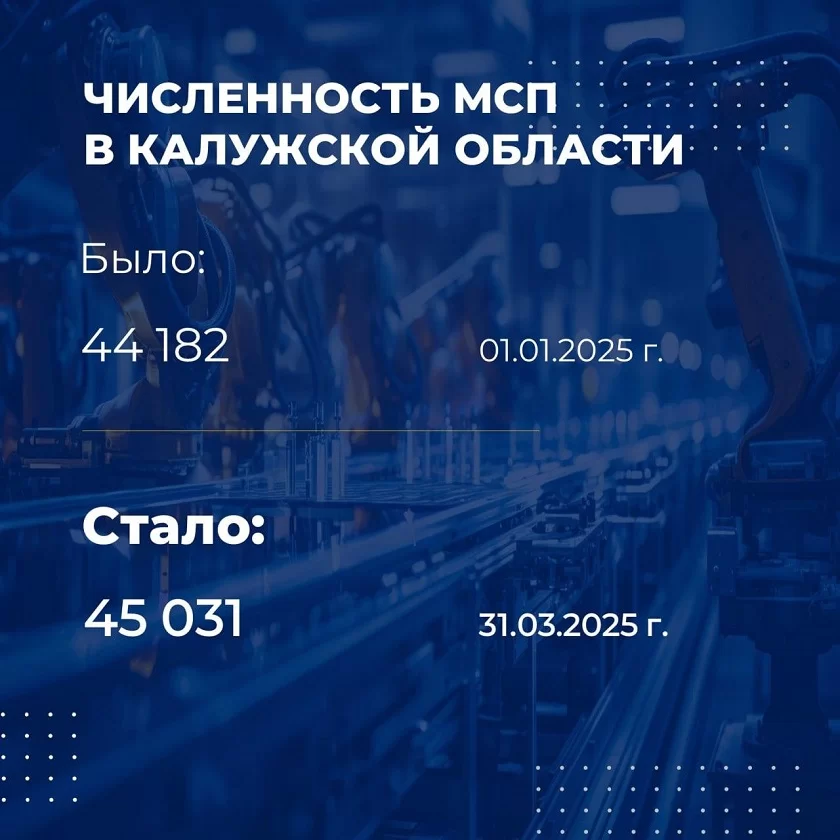 Общее количество компаний МСП в регионе превысило отметку в 45 тысяч. При этом доля малых и средних предприятий в промышленном комплексе области составляет 10%, а количество калужан, занятых в предприятиях этого сегмента, достигло 36%.