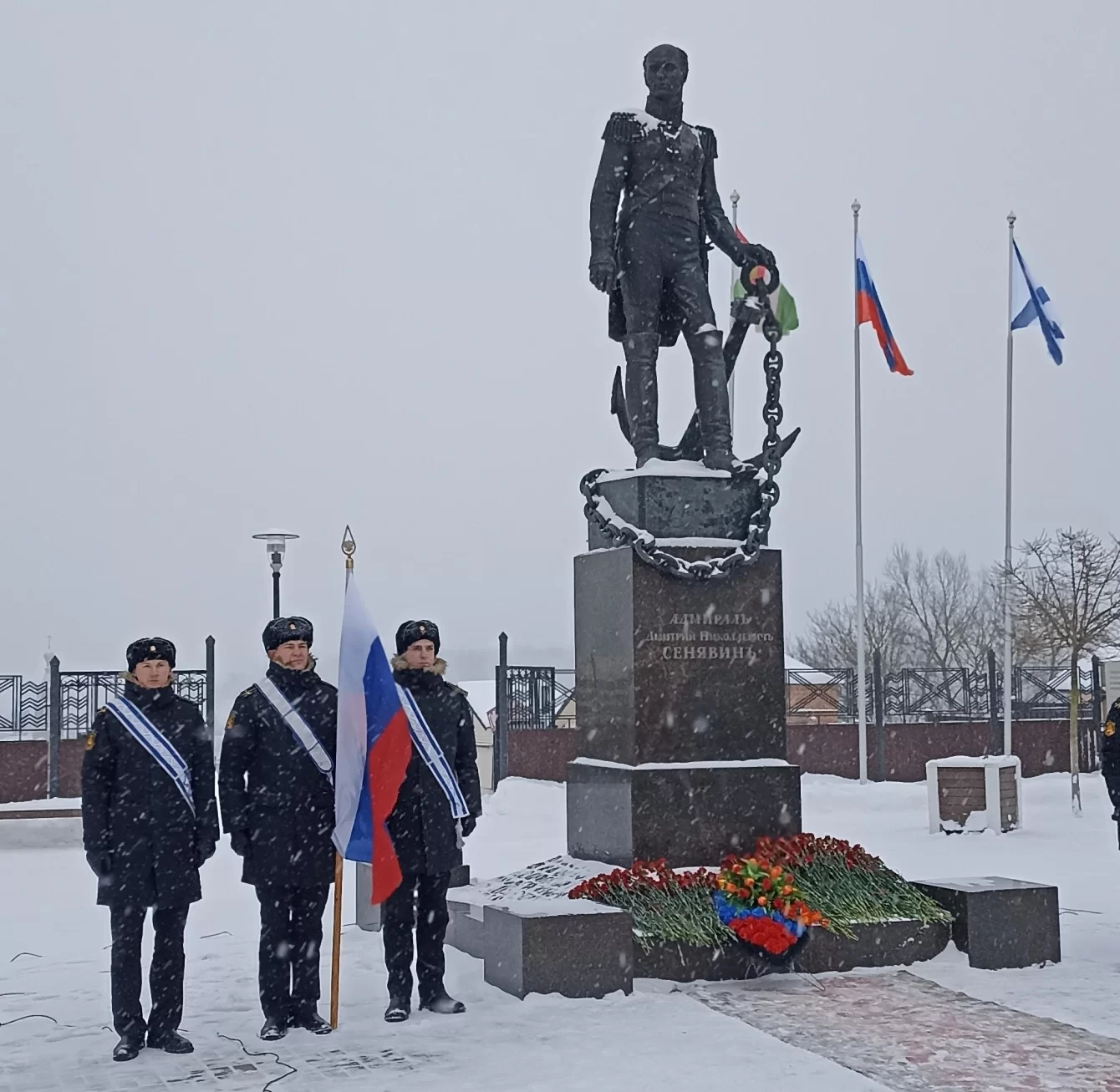 В центре Боровска, на одном из высоких холмов, стоит памятник Дмитрию Николаевичу Сенявину. 9 декабря, в День Героев Отечества, именно здесь собрались гости и местные жители.