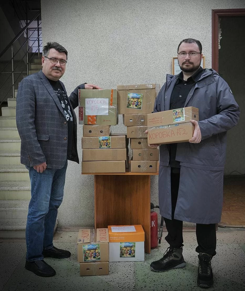 Ценный груз доставил в Калугу и лично передал председателю регионального отделения СЖР Юрию Расторгуеву советник директора по воспитанию, учитель истории и обществознания Кондровской школы №1 Павел Переборщиков.
