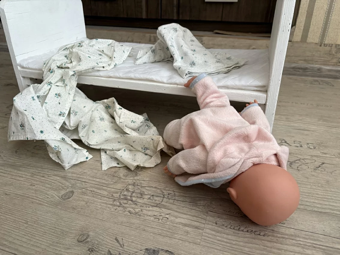 Картина, открывшаяся сотрудникам, была далеко не радостная: мать, спящая на диване, и двухнедельный ребенок, лежащий на полу головой к ветровому обогревателю, — было очевидно, что он упал с того самого дивана.