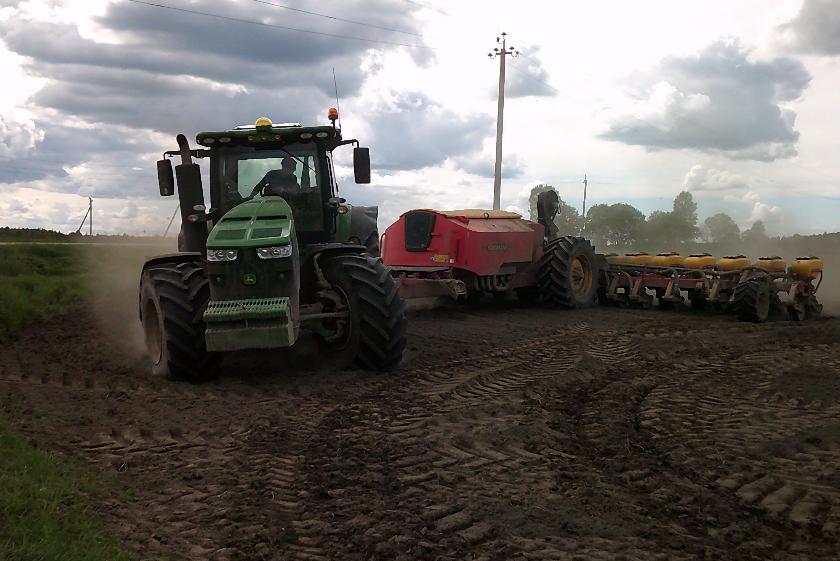 Из-за дождей низинные участки полей становятся переувлажненными, поэтому даже современные мощные трактора, «обутые» в сверхширокие шины, не могут их преодолеть. Однако работы идут в хорошем темпе, несмотря на погоду. Если для овса лишняя влага в почве даже улучшает всхожесть, что в конечном счете скажется на урожайности, то сев других культур не обходится без сложностей – механизаторам приходится выбирать участки посуше.