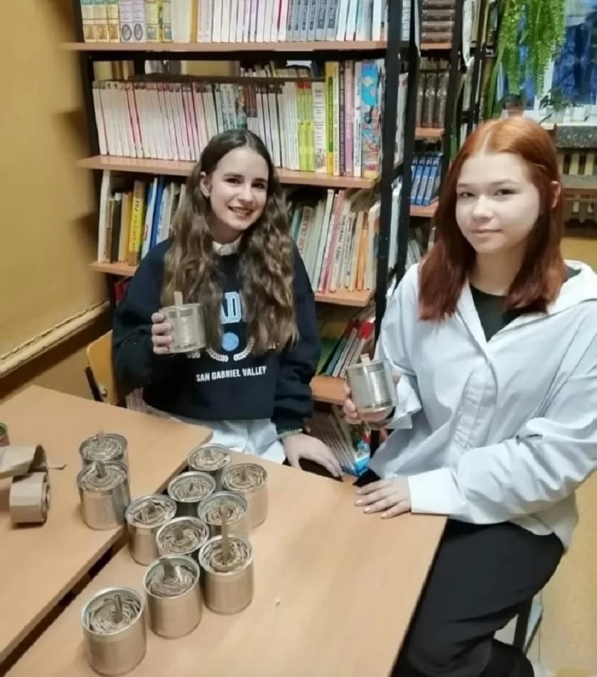 Все заготовленные свечи людиновцы приносят в храм Казанской иконы Божией Матери. Здесь же принимают пустые консервные банки, которые члены 2-го женского батальона заливают парафином и превращают в окопные свечи. Трудятся слажено и умело.