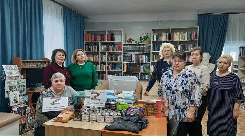Её цель – поддержка российских бойцов, находящихся сейчас в зоне боевого соприкосновения. Библиотекари наполнили посылки сладостями: конфетами, печеньем, чаем, кофе, а также влажными салфетками и полотенцами, тёплыми носками и другими вещами.
