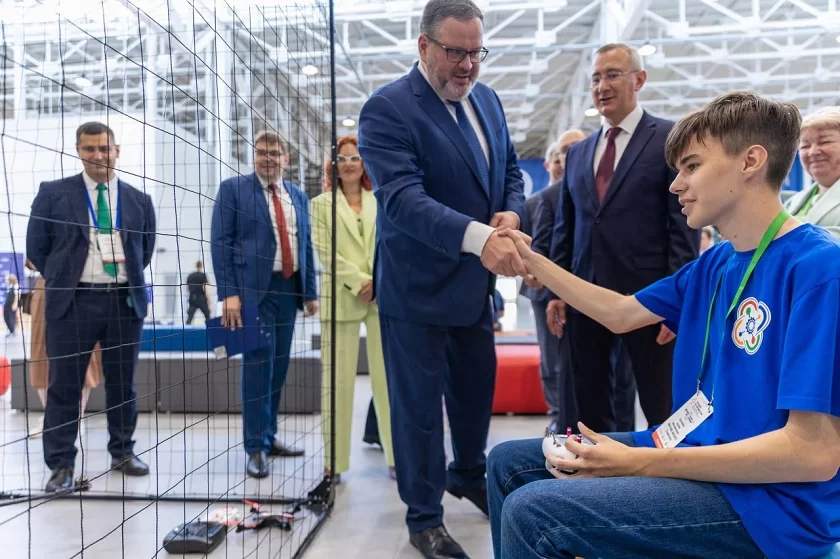 Вместе с губернатором Калужской области Владиславом Шапшой министр пообщался с организаторами и участниками Кубка «Беспилотная эволюция» – соревнований по пилотированию беспилотных летательных аппаратов.
