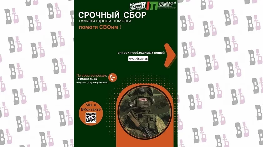 Калужское отделение «Молодой Гвардии» и «Молодежный Парламент» при Заксобрании региона открыли сбор гуманитарной помощи для бойцов СВО, сообщает областное отделение партии «Единая Россия».