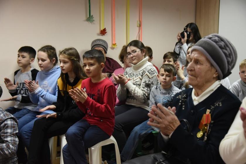 В мероприятии приняли также участие ученики местной школы и жители микрорайона. Все вместе они посмотрели фильм, посвященный нашему прославленному земляку.