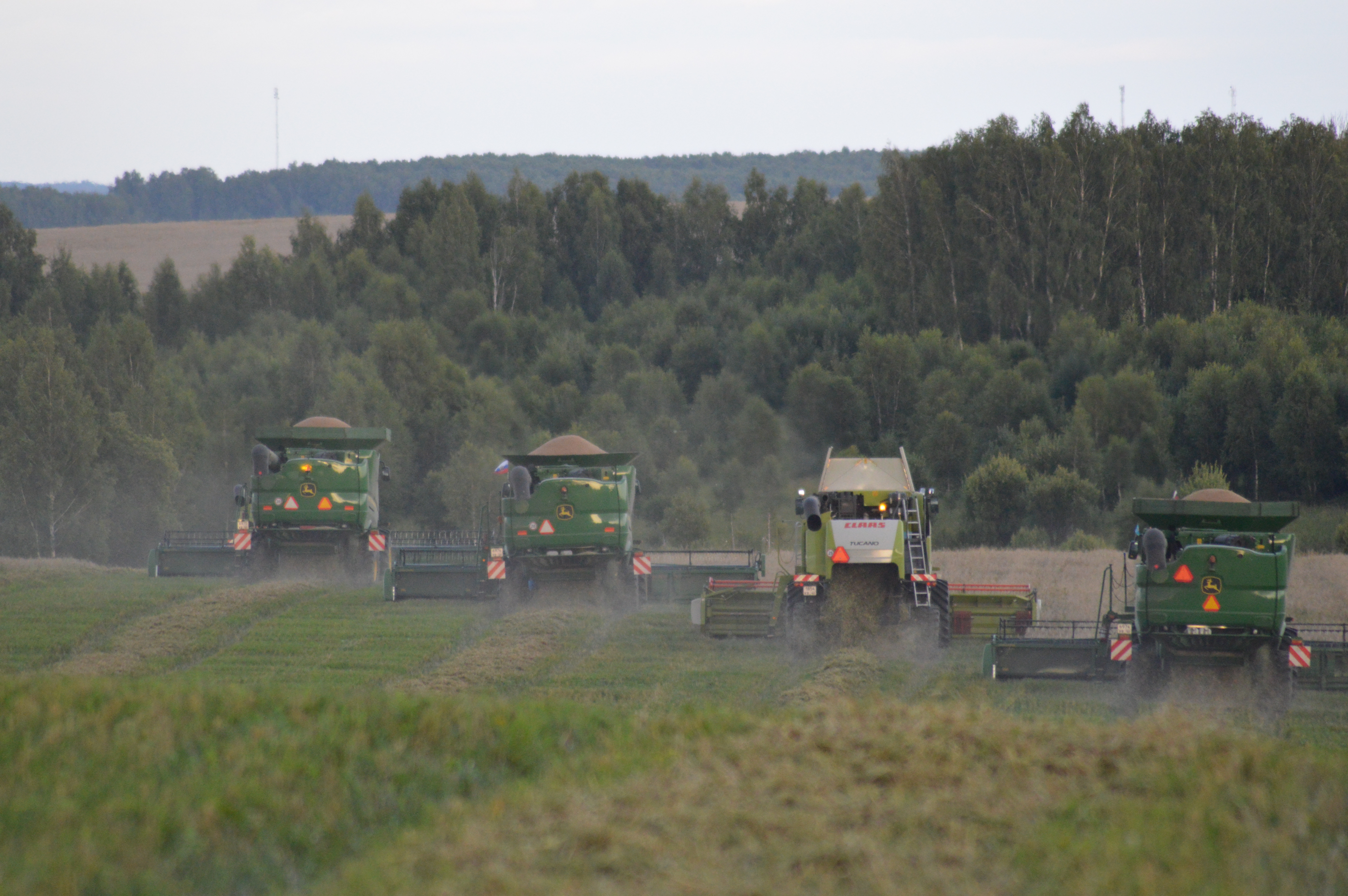 Предприятие обладает всем набором мощной современной техники для того, чтобы в сжатые сроки и качественно убирать хлеба. На жатве задействованы шесть комбайнов Claas Tucono и JD630i. Следуя в ряд друг за другом, они оставляют после себя сжатую полосу колкой стерни шириной 48 метров. Как далеко зашёл прогресс! Несколько десятилетий назад мы радовались «Енисеям», «Донам», а нынешние машины значительно точнее, мощнее и удивляют своими размерами. Они, как большие корабли, только плывущие по хлебной ниве. А управляют ими квалифицированные механизаторы.