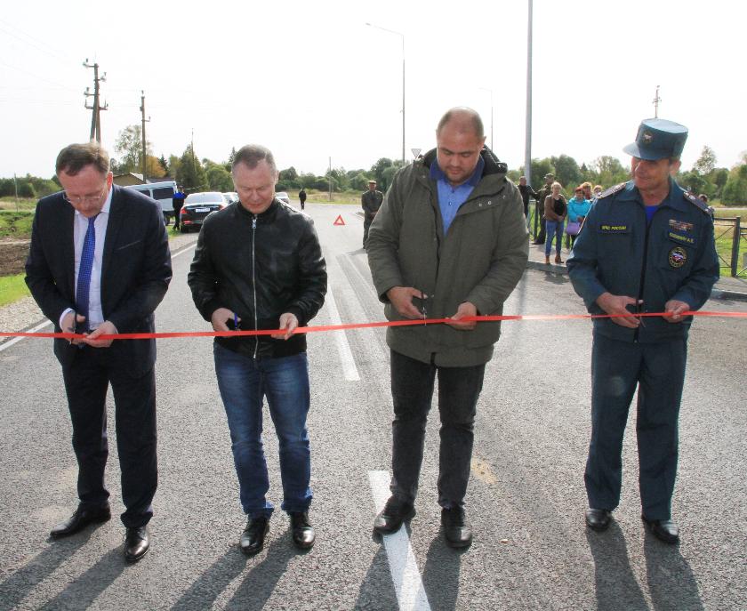 Право перерезать красную ленточку было предоставлено Андрею Хохлову, Олегу Савичкину, Александру Калинину, Владимиру Уткину. Ленточку перерезали под аплодисменты зрителей – теперь дорога введена в эксплуатацию.