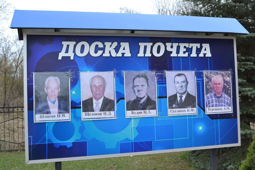 Доска открыта на территории ООО "Полотняно-Заводское карьероуправление-1" открыта необычная Доска Почета и Славы. Среди героев – портрет Ивана Будина, полного кавалера ордена Славы.